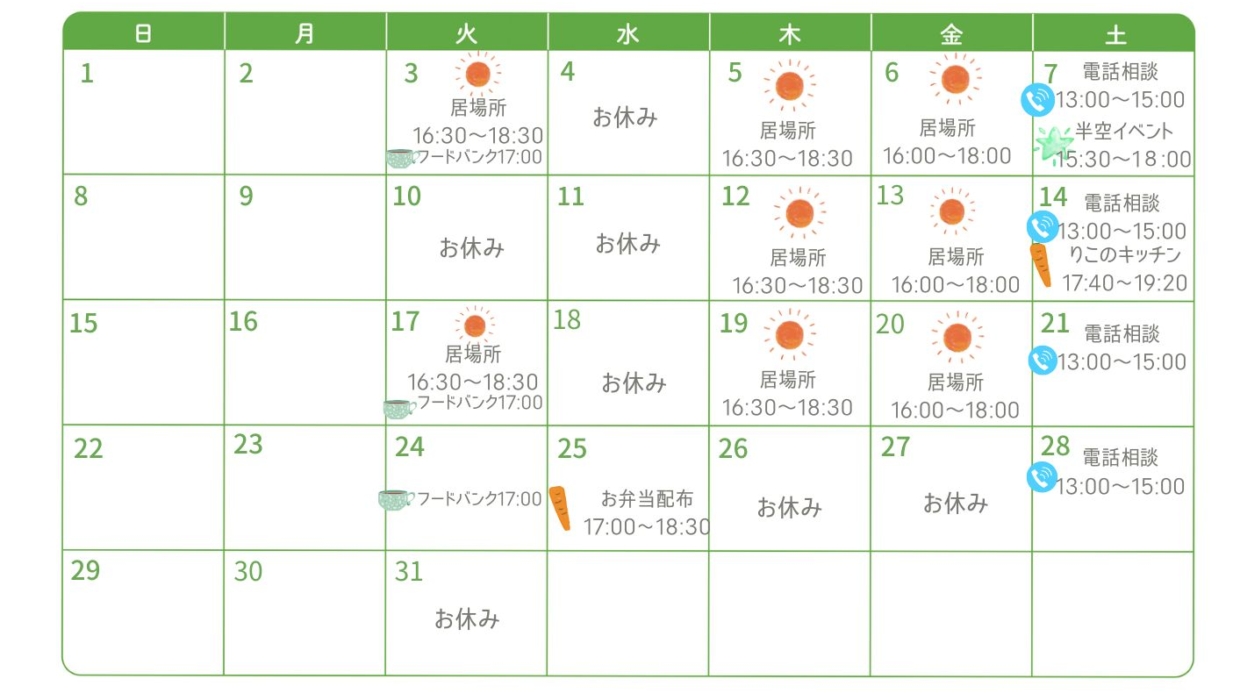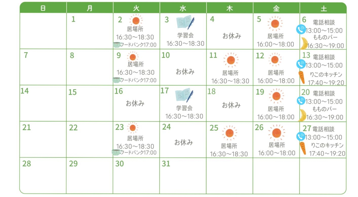 すごせる居場所を曜日や時間によって