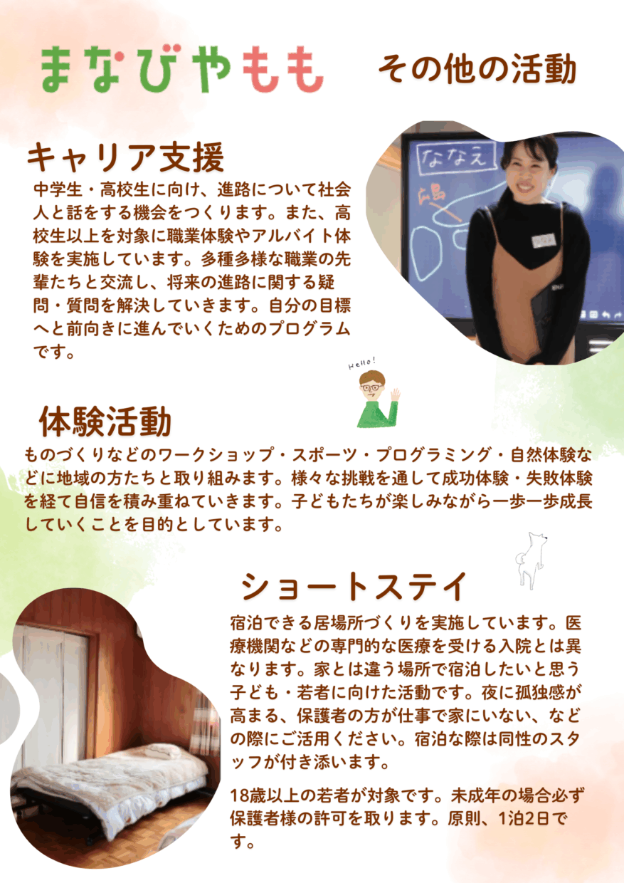 ももは、「居場所」「学び」「相談」「アート」という形をとりながら、