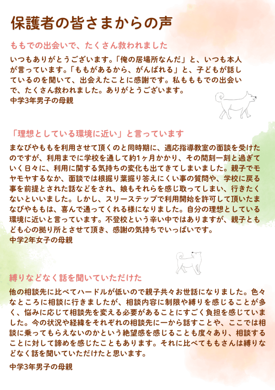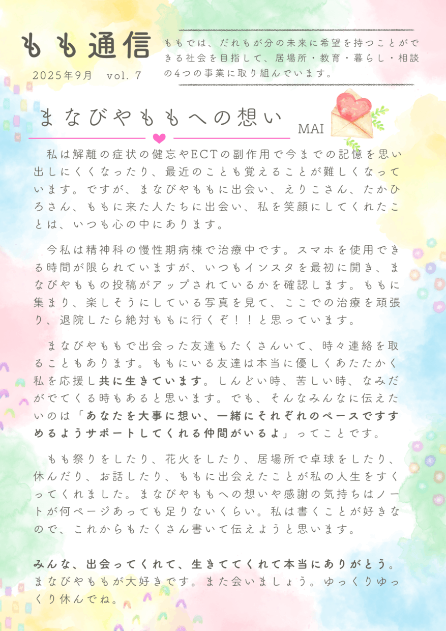 これからも、子ども・若者が安心して過ごし、自分らしさを取り戻していける場所であり続けたいと願っています。